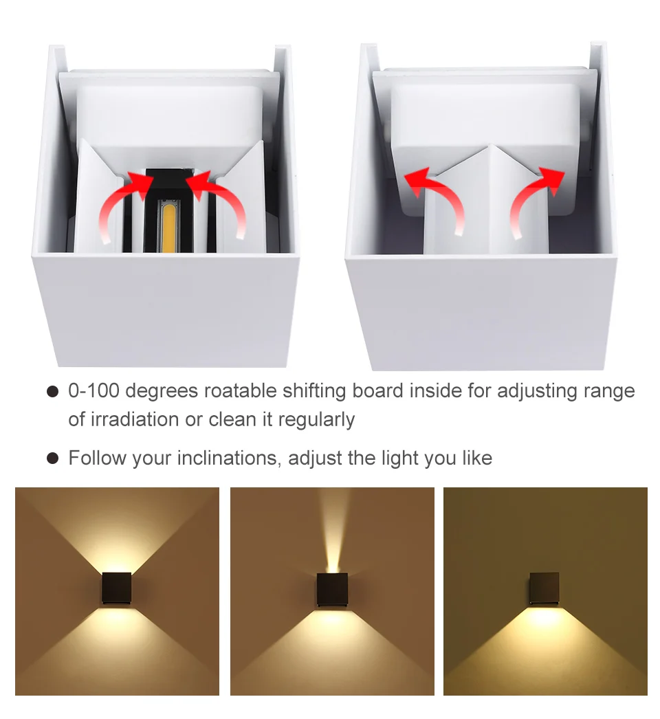 IP65 LED 6W 10W 12W Outdoor Waterproof Wall Lamp Adjustable Garden Light AC85-265 Indoor Corridor Stairs Bedroom Wall Light
